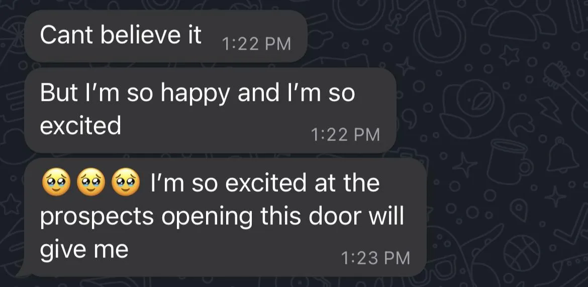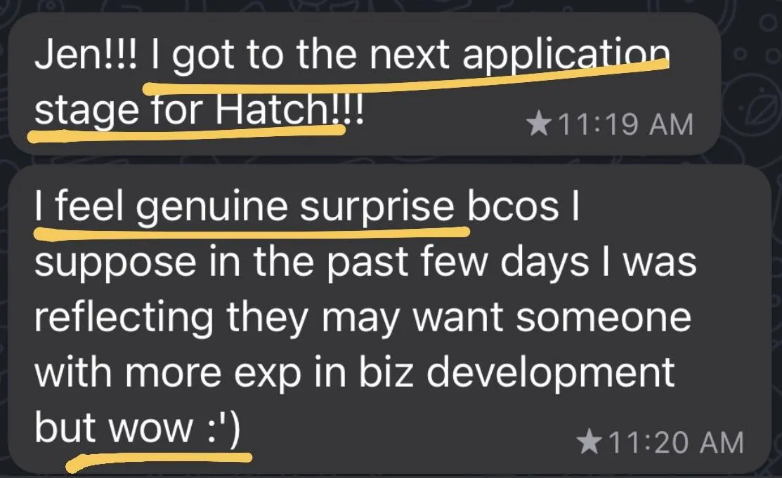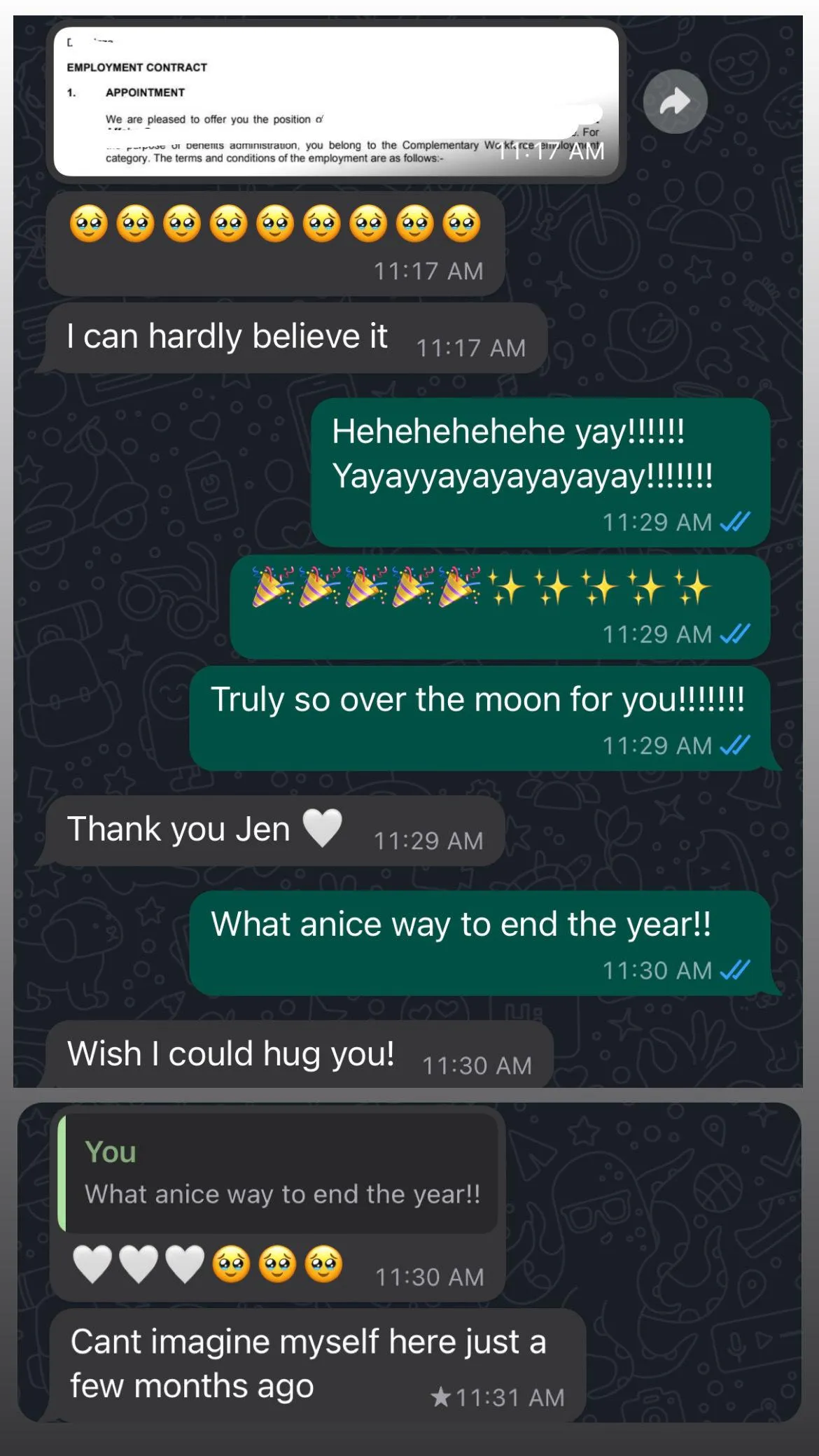 It wouldn’t have been possible without what Jen taught me about informational interviews, tracking job listings on LinkedIn and believing in what I have to offer 😭."