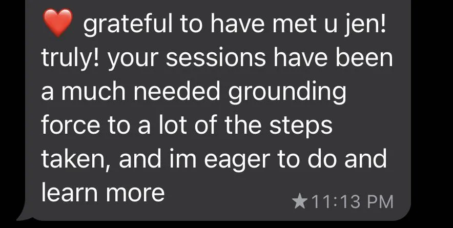 Jen is also very intelligent and she has like a bag full of vocabularies to help you convey your thoughts or describe things that you don't often describe about yourself and when she puts it in layman way you kinda start to picture yourself in that way which is great- you feel good and you feel its describing who you are."