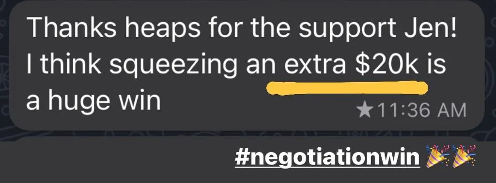 "Working with Jen, I landed 3 job offers and successfully pivoted into edutech. Jen even helped me negotiate an extra $20K in the process!