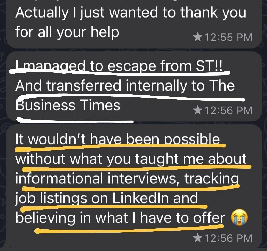 And that's how I created my 3 step Ctrl Alt Career framework - through trial and error, and not just regurgitated from a textbook. I know my methods work because I've put it to the fire for myself and honed it over the past 5 years with hundreds of clients.